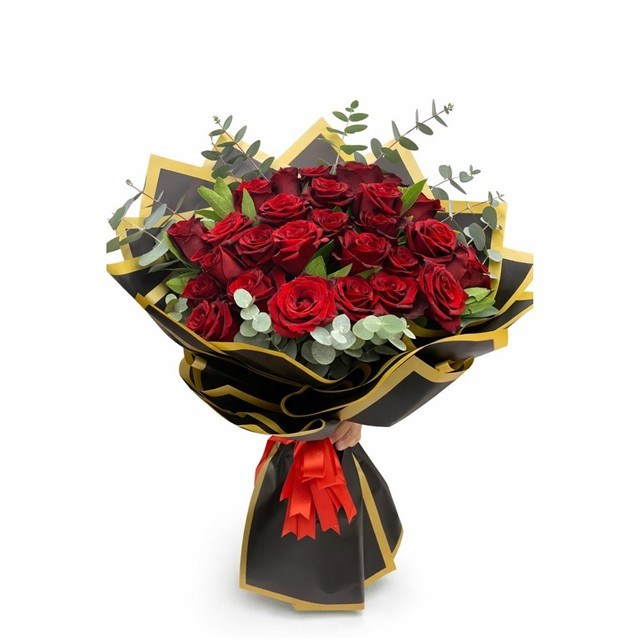 Altın Asalet Kırmızı Gül Buketi, kırmızı güllerin tutkulu aşk mesajını, siyah ve altın renkli ambalajın lüks duruşuyla bir araya getirir.Okaliptüs dokunuşları bukete modern bir zarafet katarken, yoğun gül yerleşimi ürünü gösterişli ve etkileyici bir hediyeye dönüştürür.Özel hissettirmek istediğiniz anlar için tasarlanmış, prestijli bir gül buketidir.?? ÜRÜN İÇERİĞİ (ZENGİN) 25 adet kırmızı gülCanlı okaliptüs dallarıDekoratif yeşil dolgu yapraklarıSiyah & gold premium buket kâğıdıProfesyonel, hacimli buket tasarımıKırmızı saten kurdele ?? BAKIM ÖNERİSİ Sapları çapraz keserek temiz suya koyunuzSuyu 2 günde bir değiştirinizDirekt güneş ışığı ve sıcak ortamdan uzak tutunuzSerin ortamda daha uzun süre canlı kalır