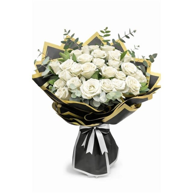 Siyah Altın Zarafet Beyaz Gül Buketi, beyaz güllerin saflığını siyah ve altın ambalajın asil duruşuyla birleştirir.Modern, sade ve güçlü bir görünüme sahip bu beyaz gül buketi; hem romantik hem de prestijli bir hediye alternatifi sunar.Özel günlerde “fazla gösteriş değil, net zarafet” arayanlar için ideal bir seçimdir.?? ÜRÜN İÇERİĞİ25 adet beyaz güller Okaliptüs yapraklarıYeşil dekoratif dolgu bitkileriSiyah & altın ambalajSiyah şık kurdele bağlamaEl işçiliği ile hazırlanmış özel tasarım?? Mevsim ve stok durumuna göre dolgu yeşilliklerinde küçük farklılıklar olabilir. Genel tasarım korunur.?? BAKIM ÖNERİLERİ Sapları 1–2 cm çapraz kesinizSuyu 2 günde bir değiştirinizDirekt güneş ve cereyandan uzak tutunuzSerin ortamda daha uzun ömürlü olur