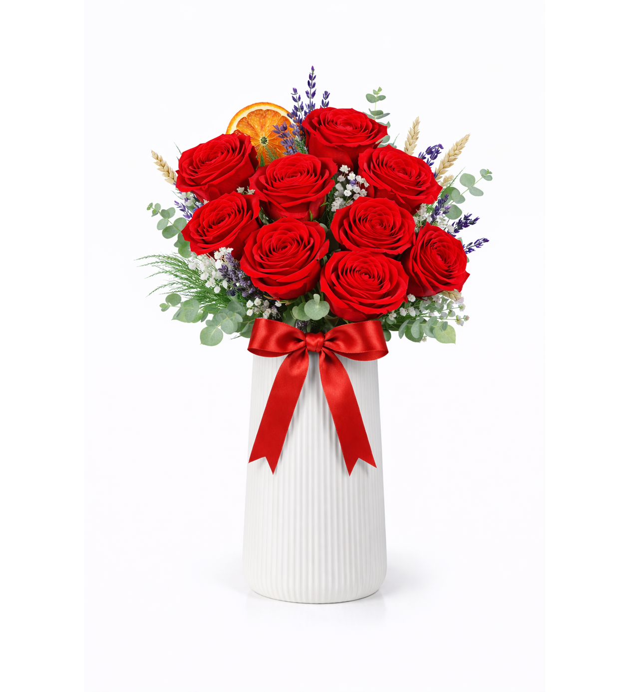 Vazoda premium kırmızı gül aranjmanı, zarafeti ve güçlü duruşuyla özel anlar için tasarlanmıştır.Taze kırmızı güller, şık beyaz seramik vazo ve özenli detaylarla hazırlanan bu aranjman; doğum günü, yıldönümü, Sevgililer Günü ve romantik sürprizler için mükemmel bir tercihtir.Günlük olarak hazırlanan taze çiçekler, özenli paketleme ve hızlı teslimat ile adresinize ulaştırılır.Premium kırmızı gül aranjmanını güvenle sipariş verebilirsiniz. ADET : 9 ADET KIRMIZI GÜL 1 ADET KURUTULMUŞ PORTAKAL