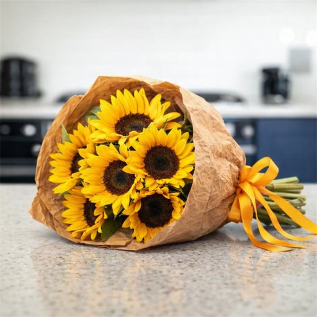 Florenta Çiçekçilik’in en çok tercih edilen ürünlerinden biri olan bu özel tasarım; doğallığı sevenler için hazırlanmış zarif ve göz alıcı bir ayçiçeği buketidir.Ayçiçekleri, bulunduğu ortama anında sıcaklık ve enerji katan çiçeklerin başında gelir. Bu buket; sarı tonların canlılığıyla sevdiklerinize “Gülümse, hayat güzel!” mesajını verir.Buket, özel kraft kağıt ambalaj ile modern ve doğal bir görünüm kazanırken, sarı saten kurdele detayıyla şıklığı tamamlar. Hem sade hem de gösterişli bir hediye arayanlar için mükemmel bir tercihtir. Doğum günü, yeni iş tebriği, yeni ev hediyesi veya içten bir sürpriz için her zaman doğru seçimdir. Ayçiçeği buketi özellikle enerjik ve pozitif ruhlu kişiler için çok anlamlı bir hediyedir ?? Ürün İçeriği (Malzemeler) ? Ayçiçeği (6-7 adet arası)? Yeşil yaprak ve dolgu bitkileri? Kraft kağıt ambalaj (doğal görünüm)? Sarı saten kurdele? Profesyonel buket bağlama ve sabitleme(Ayçiçeği adedi ürün yoğunluğuna göre değişebilir.) ?? Ayçiçeğinin Anlamı ?? Ayçiçeği: Mutluluk, pozitif enerji, sadakat, umut?? Sarı rengiyle “iyi ki varsın” demenin en güzel yoludur.Bu yüzden ayçiçeği buketleri, sadece çiçek değil; moral ve enerji hediyesidir. ?? Bakım Önerileri Buketi vazoya koymadan önce saplarını 1-2 cm kesiniz.Temiz su ekleyip her gün suyunu yenileyiniz.Serin ortamda daha uzun süre canlı kalır.Direkt güneş ışığı ve sıcak ortamdan uzak tutunuz.