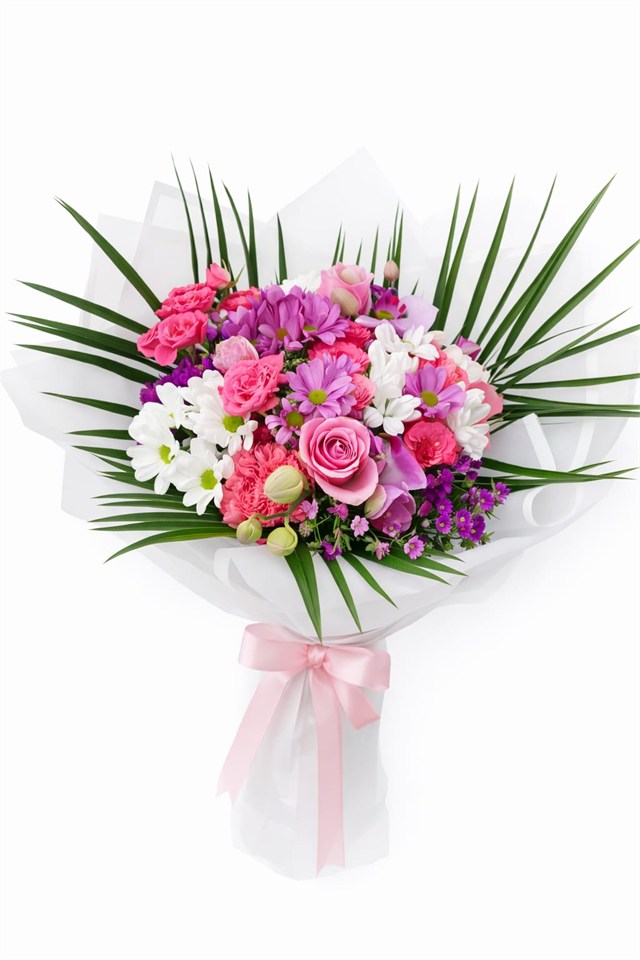 Pembe Bahar Rüyası Karışık Çiçek Buketi, canlı renkleri ve zengin içeriğiyle özel günlerde sevdiklerinize unutulmaz bir sürpriz yapmak için tasarlandı.Pembe güllerin romantik duruşu, beyaz papatyaların saflığı, mor tonların enerjisi ve orkidenin asil görüntüsü bir araya gelerek premium bir buket ortaya çıkarır.Şeffaf beyaz ambalaj ve pembe kurdeleyle hazırlanmış bu buket, hem modern hem zarif bir görünüme sahiptir.Florenta Çiçekçilik güvencesiyle özenle hazırlanır, tazeliği kontrol edilir ve teslimata hazır şekilde paketlenir. ?? Ürün İçeriğiPembe Gül (4 adet)Pembe çardak gül (4 dal )Beyaz Papatya / Krizantem (2 dal)Mor Krizantem / Papatya (3 dal)Pembe Karanfil ( 2 adet )Mevsim yeşillikleriDekoratif palmiye yapraklarıBeyaz şeffaf ambalajPembe saten kurdele?? (Mevsime göre bazı çiçekler buket içinde degişkenlik gösterebilir ve dolgu çiçeklerinde küçük farklılık olabilir.) ?? Bakım ÖnerisiÇiçeklerin sap kısmı 2-3 cm kesilerek vazoya konulmalıdır.Suyu 2 günde bir değiştirilmelidir.Serin ortamda muhafaza edilmelidir.Direkt güneş ve kalorifer yanından uzak tutulmalıdır. ?? Hangi Durumlar İçin Uygun? ? Doğum günü? Sevgiliye sürpriz? Yıl dönümü? Yeni iş / terfi kutlaması? Geçmiş olsun? Tebrik çiçeği? Anneler Günü? Kadınlar Günü? Özür & barışma buketi? “Seni Seviyorum” hediyesi