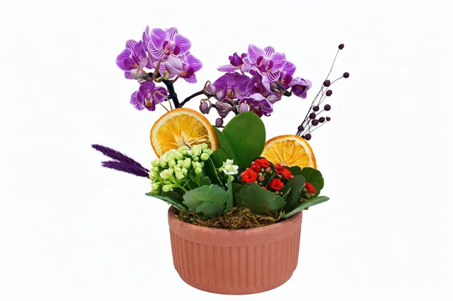 Farklı ve modern tasarımları sevenler için hazırlanan Portakal Dilimli Mini Mor Orkide & Kalanşo Saksı Aranjmanı, Florenta Çiçekçilik’in en özel ve dikkat çekici modellerinden biridir. Mini mor orkidenin zarif görünümü, kırmızı kalanşonun canlı enerjisiyle birleşerek ortaya hem şık hem de uzun ömürlü bir aranjman çıkarır.Bu tasarımın en özel detayı ise aranjmana eklenen kuru portakal dilimi süslemeleridir. Portakal dokunuşu ürüne hem ferah hem de premium bir hava katar. Saksı üzerinde kullanılan doğal yosun görünümü ve dekoratif kuru çiçekler, tasarımı daha zengin ve modern hale getirir.Bu ürün; doğum günü, yeni iş tebriği, yeni ev hediyesi, geçmiş olsun veya “Sana özel bir hediye aldım” demek istediğiniz her an için mükemmel bir seçenektir. Orkide ve kalanşo bitkileri uzun süre canlı kalabildiği için hediye alan kişi bu şık tasarımı uzun süre keyifle kullanabilir.Florenta Çiçekçilik ekibi tarafından özenle hazırlanan bu aranjman, taze ve sağlıklı bitkilerle hazırlanır ve teslimat sırasında formu bozulmadan güvenli şekilde teslim edilir. ?? Ürün İçeriğiMini Mor Orkide (Phalaenopsis)Kırmızı Kalanjo (Kalanchoe)Beyaz Kalanjo (Kalanchoe)2 adet kuru portakal dilimi dekorMor dekoratif kuru başak / pampasSaksı üstü doğal yosun süslemeKiremit saksı ?? Orkide çiçek sayısı ve tomurcuk oranı mevsime göre değişebilir. ???? Çiçeklerin Anlamı?? Mor Orkide: Asalet, zarafet, hayranlık?? Kalanşo: Mutluluk, canlılık, pozitif enerji?? Portakal detayı: Ferahlık, sıcaklık, enerji ve özgünlük ?? Bakım ÖnerisiOrkide haftada 1 kez az su ile sulanmalıdır.Kalanşo toprağı kurudukça sulanmalıdır.Direkt güneş yerine aydınlık ortamda tutulması önerilir.Aşırı sulama bitkilere zarar verebilir.