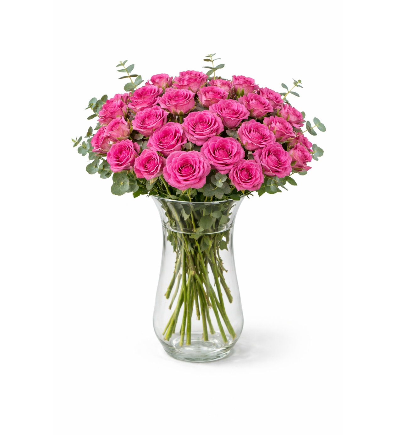 Canlı ve taze pembe güllerden hazırlanan bu özel buket,şeffaf cam vazo içerisinde sade ve zarif bir şıklık sunar.Minimal tasarımı sayesinde her ortama uyum sağlarve pembe güllerin romantik etkisini ön plana çıkarır.Sevgi, zarafet ve içtenliği simgeleyen pembe güller;doğum günü, yıldönümü, teşekkür, geçmiş olsunve özel anlar için kusursuz bir hediye alternatifidir.ADET : 35 ADET PEMBE ÇARDAK GÜL