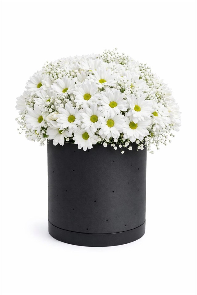 Beyaz papatyalar; saflığı, içtenliği ve temiz duyguları temsil eder. Bu özel tasarım aranjman, abartıdan uzak ama etkisi yüksek bir şıklık sunar.Mat siyah silindir kutu içerisinde özenle yerleştirilen beyaz papatyalar, cipso (gypsophila) ile desteklenerek dolgun ve dengeli bir görünüm kazanır.Siyah ve beyazın zamansız uyumu sayesinde bu tasarım; hem klasik hem de modern zevklere hitap eder. Sevgiliye, aileye, iş ortamına ya da özel bir teşekkür için en risksiz ve en şık çiçek alternatiflerinden biridir.Florenta Çiçekçilik kalitesiyle hazırlanan bu aranjman, taze çiçek garantisi ve özenli el işçiliği ile sunulur. ?? ÜRÜN DETAYLARIÇiçek Türü: Papatya (Kasımpatı)Çiçek Rengi: BeyazAdet: 35-40 adet (dolgun tasarım)Dolgu Çiçeği: Cipso (gypsophila)Kutu: Siyah silindir kutu ?? BAKIM ÖNERİSİKutudaki sünger nemli tutulmalıdırDirekt güneş ışığından uzak tutulmalıdırSerin ortamda muhafaza edilmesi önerilirÇiçek besini kullanılması ömrünü uzatır