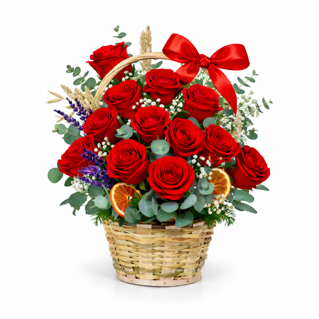 Tutkunun Zarafeti, aşkın ve romantizmin simgesi olan kırmızı güllerin, doğal hasır sepet içerisinde özenle hazırlanmış özel bir aranjmanıdır. Günlük taze kırmızı güller, lavanta dalları, cipso çiçekleri, okaliptüs yaprakları ve dekoratif kuru portakal dilimleriyle zenginleştirilerek hem görsel hem de duygusal olarak etkileyici bir tasarım sunar.Üzerindeki kırmızı saten kurdele, aranjmana romantik ve şık bir dokunuş katar. Sevgililer Günü, yıldönümü, doğum günü, evlilik teklifi ya da sadece sevginizi ifade etmek için mükemmel bir tercihtir. Tüm ürünler taze çiçek garantisiyle hazırlanır ve özenle teslim edilir.ADET : 12 ADET KIRMIZI 1 ADET HASIR SEPET 2 ADET KURUTULMUŞ PORTAKAL