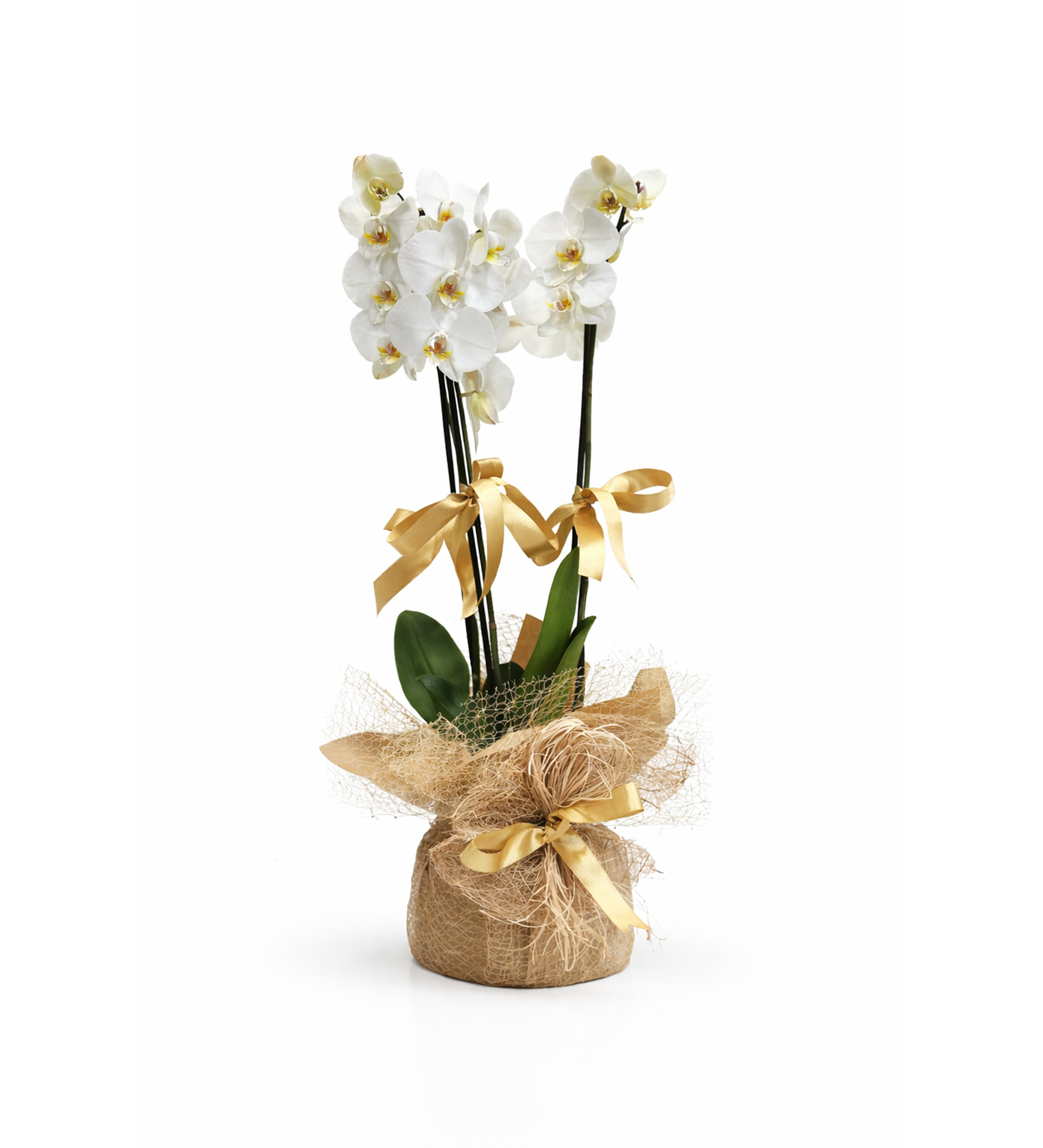 Özenle seçilmiş çift dallı beyaz phalaenopsis orkide, gold kurdele ve doğal jüt ambalaj ile şık bir sunumla hazırlanmıştır. Beyaz orkide; zarafet, saygı ve iyi dilekleri simgeler.Uzun süre canlı kalabilen yapısı sayesinde hem ev hem ofis ortamları için idealdir.Yeni iş tebriği, geçmiş olsun, teşekkür ya da özel günlerde en güvenli ve prestijli çiçek tercihlerinden biridir.?? ÜRÜN DETAYLARIBitki Türü: Phalaenopsis OrkideDal Sayısı: Çift dalRenk: BeyazSaksı: Seramik (jüt ambalajlı)